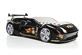 Jugendbett Kinderbett Autobett Fivex schwarz mit Geräuschen mit LED Leuchten mit Spoiler Lattenrost und Fernbedienung