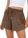 BUHIM Shorts Damen Sommer Sport Shorts Lässige Kurze Hose Baumwolle High Waist Running Shorts Gym Fitness Shorts Kurz Sporthose Jogginghose (Kaffee, L)