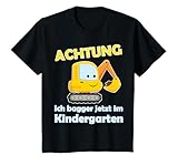 Süßes Motiv für ein Kindergartenkind mit Bagger. Spruch für Jungen bzw. Jungs. Idee für den ersten Tag im Kindergarten oder den Kita Anfang.