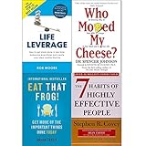 Who moved my cheese, eat that frog, 7 habits of highly effective people and life leverage 4 books collection set