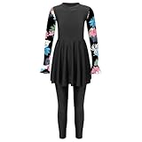 Sinleey Mädchen Muslimisches Burkini Badkleid Langärmelig Uv Schutz Mit Badehose Schwimmanzug Bedruckt Schwarz 158-164